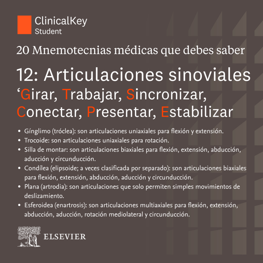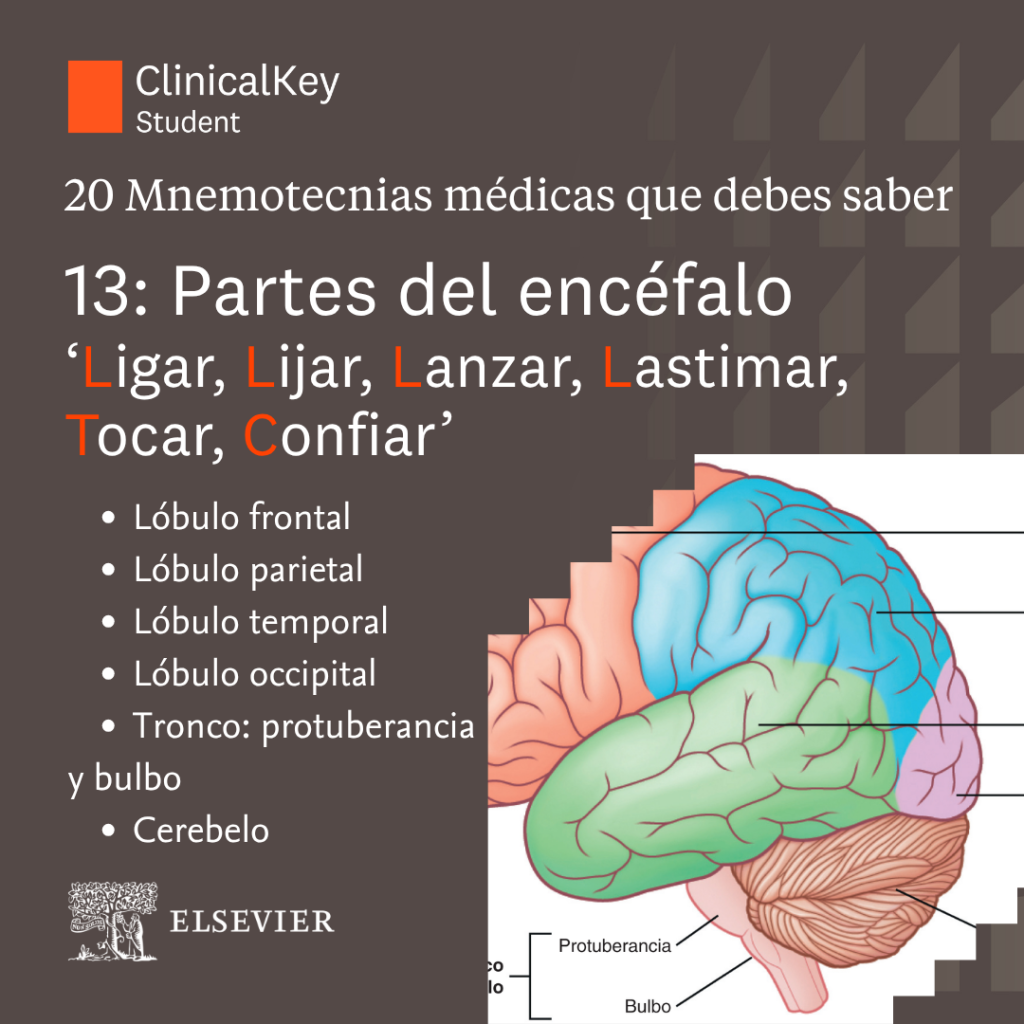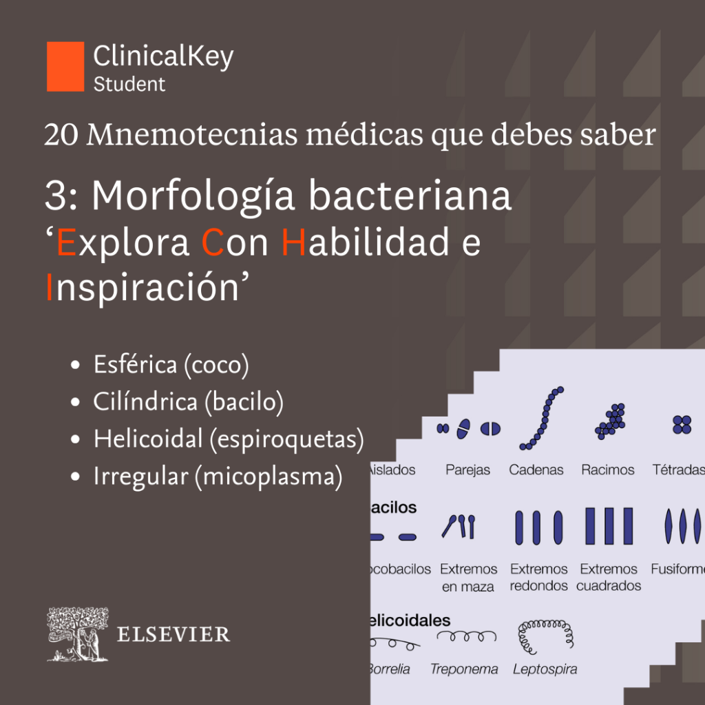¿Sabías que las mnemotecnias y las técnicas de aprendizaje activo (Leer: 9 estrategias clave para un aprendizaje efectivo – Student Hub Spain) son la clave para recordar conceptos complejos y potenciar tu estudio en Medicina? A continuación te compartimos 20 ejemplos prácticos tomados de nuestra plataforma de formación interactiva ClinicalKey Student y de las obras de referencia que recoge, para que aprender sea más fácil, divertido y efectivo.