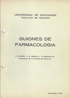 Dr. Flórez: Todo se inició cuando, con mis títulos de doctor en Medicina y Cirugía (Universidad de Navarra, España) y doctor en Fisiología y Farmacología (Universidad Dartmouth, USA), me incorporé como profesor de Farmacología en la Facultad de Medicina de la Universidad de Navarra (UNAV). Y empezó entregando a cada alumno, antes de impartir una clase, un escueto guion que simplemente contenía el título de cada una de los apartados en que se iba a dividir la exposición. Con el tiempo, en los sucesivos años en Pamplona, y posteriormente en Tenerife y en Santander, ese guion iba creciendo por que incorporaba los nuevos datos que iban apareciendo en la literatura y que los alumnos no podían encontrar en sus libros de texto. Y fue así como en 1975 apareció de una manera muy rústica la publicación llamada Guiones de Farmacología que entregué puntualmente a los alumnos de ese y posteriores años en la entonces llamada Universidad de Santander (ahora Universidad de Cantabria), al comienzo de curso. Para entonces ya se habían incorporado los doctores Juan Antonio Armijo y África Mediavilla y colaboraron en sus respectivas áreas farmacológicas.