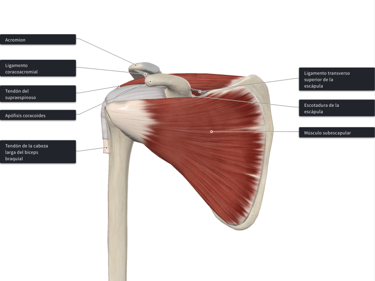 Flashcard de anatomia 3D: músculos del manguito rotador: vista anterior.