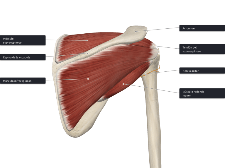 Flashcard de anatomia 3D: músculos del manguito rotador: vista posterior.